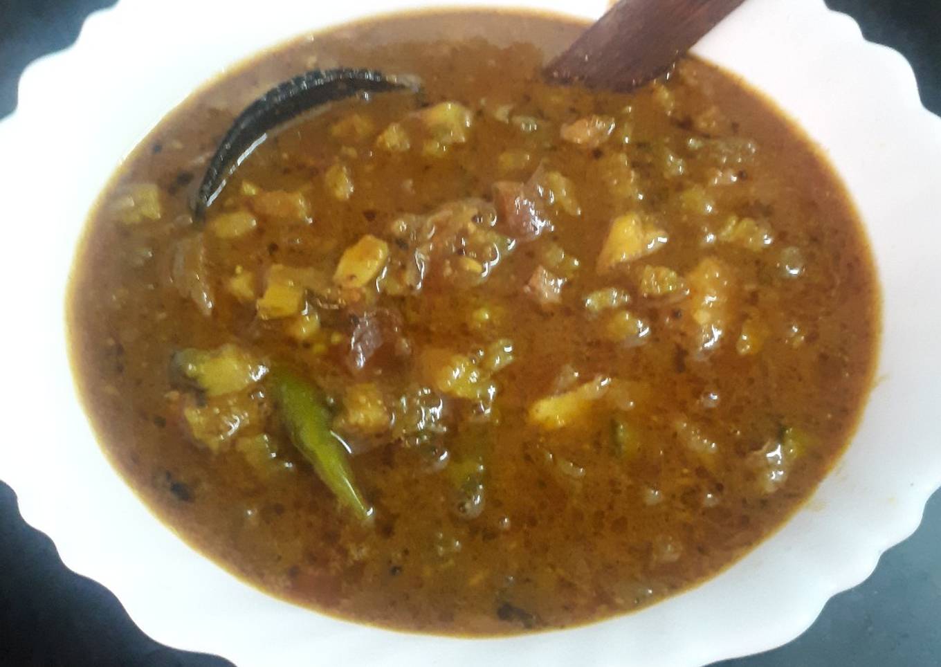 - Boil curry till oil separates and curry becomes thick.Check salt.you can adjust tamarind and jaggery to your taste.