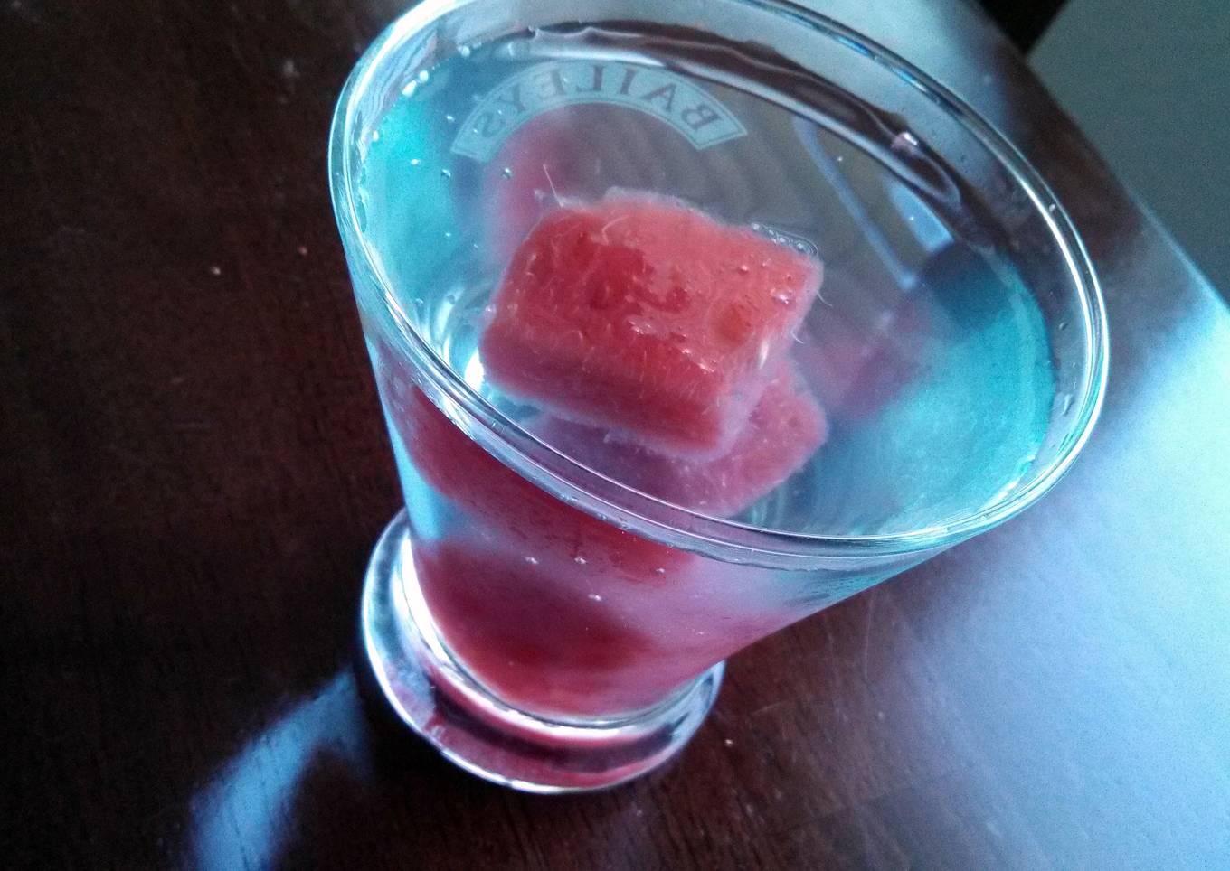 - Pour into a glass and add cubes of watermelon to garnish.