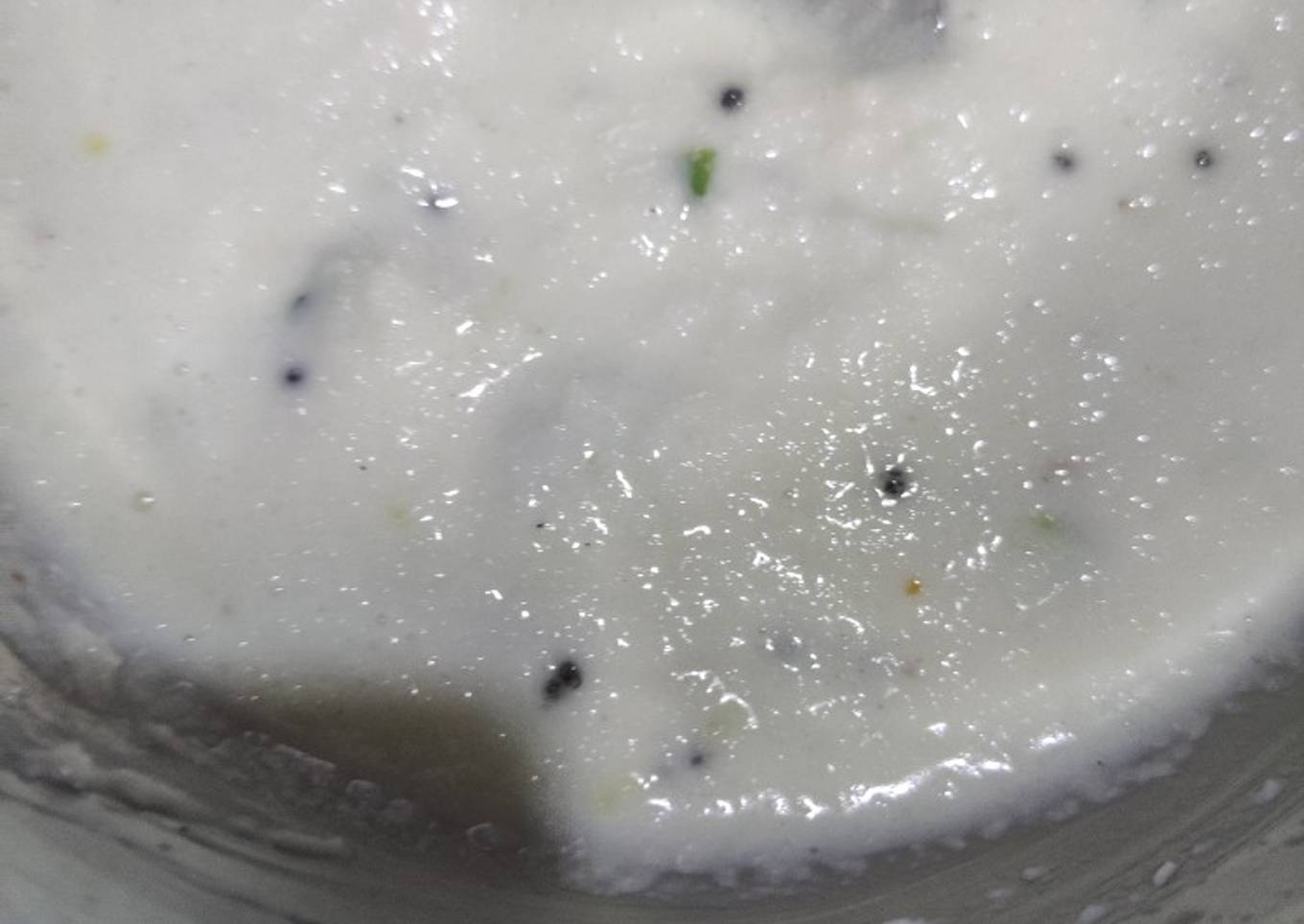 - Coconut + curd+salt+green chillies+garlic mix this all and blend it.
