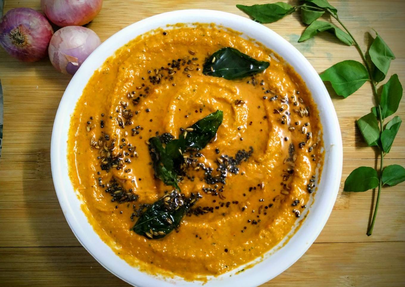 This is also known as wet podi chutney. It is made with onions, tomatoes, garlic, ginger coconut and other spices.
