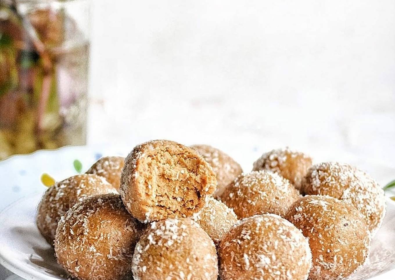 - Roll everything into balls and dust it with dessicated coconut. No oil is required. The oil from peanuts bind it well.