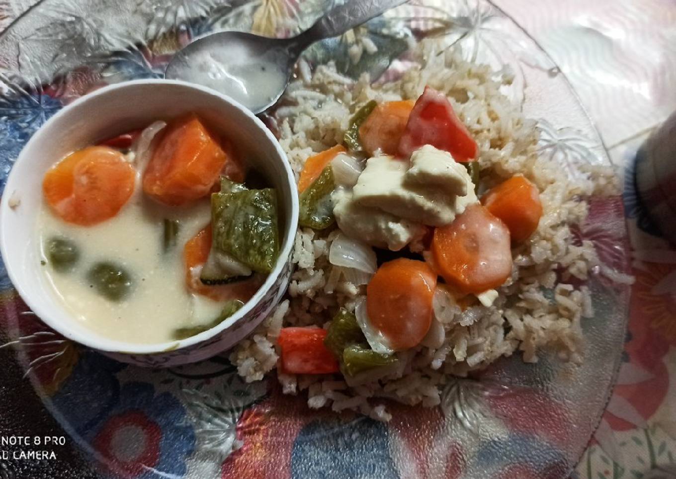 - Boil veggies in water for 14 min add salt.Cut onion in dices.Add 1 TSP coconut oil,add onion saute add both peppers.Add 1 tsp green chilli paste,1/2 tsp black pepper.Add salt to taste.Cover for 5 min.Add cottage cheese pieces.Make a slurry of 2 tsp cornflour with 1/2 cup water.Add 3/4 cup coconut milk.Cover and cook for 5 minutes.